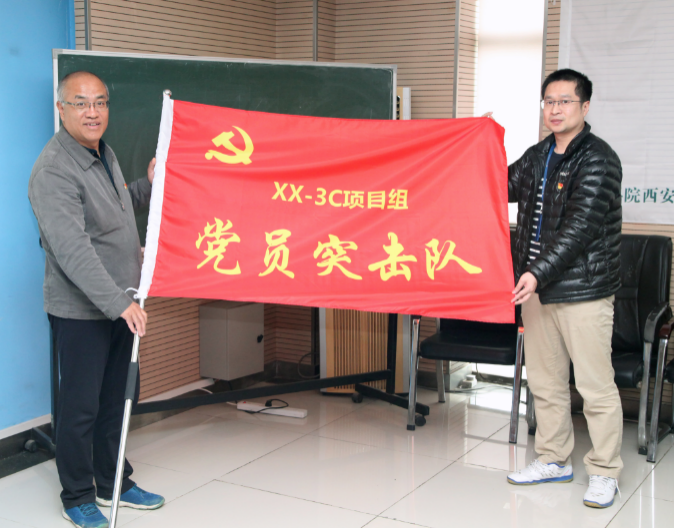支部大會(huì)上謝梅林書(shū)記向廣大黨員宣貫主題活動(dòng)實(shí)施規(guī)劃、口號(hào)和目標(biāo),向突擊隊(duì)員和先鋒隊(duì)隊(duì)員提出了明確職責(zé)要求。本次活動(dòng)的口號(hào):“攻堅(jiān)克難力踐四個(gè)國(guó)家,凝心匯智盡展黨員風(fēng)華”,時(shí)間從3月25日開(kāi)始到項(xiàng)目交付結(jié)束,號(hào)召大家在科研實(shí)踐活動(dòng)中對(duì)標(biāo)中科院對(duì)全體科研工作者“四個(gè)國(guó)家”的定位和要求,讓黨旗在科研一線高高飄揚(yáng)。為對(duì)本次活動(dòng)進(jìn)行廣泛宣傳和對(duì)參與隊(duì)員進(jìn)行精神激勵(lì),以及自覺(jué)接受廣大黨員群眾的督導(dǎo),兩個(gè)項(xiàng)目的調(diào)試現(xiàn)場(chǎng)和研究室宣傳欄均進(jìn)行了黨旗、隊(duì)旗和宣傳標(biāo)語(yǔ)布置。